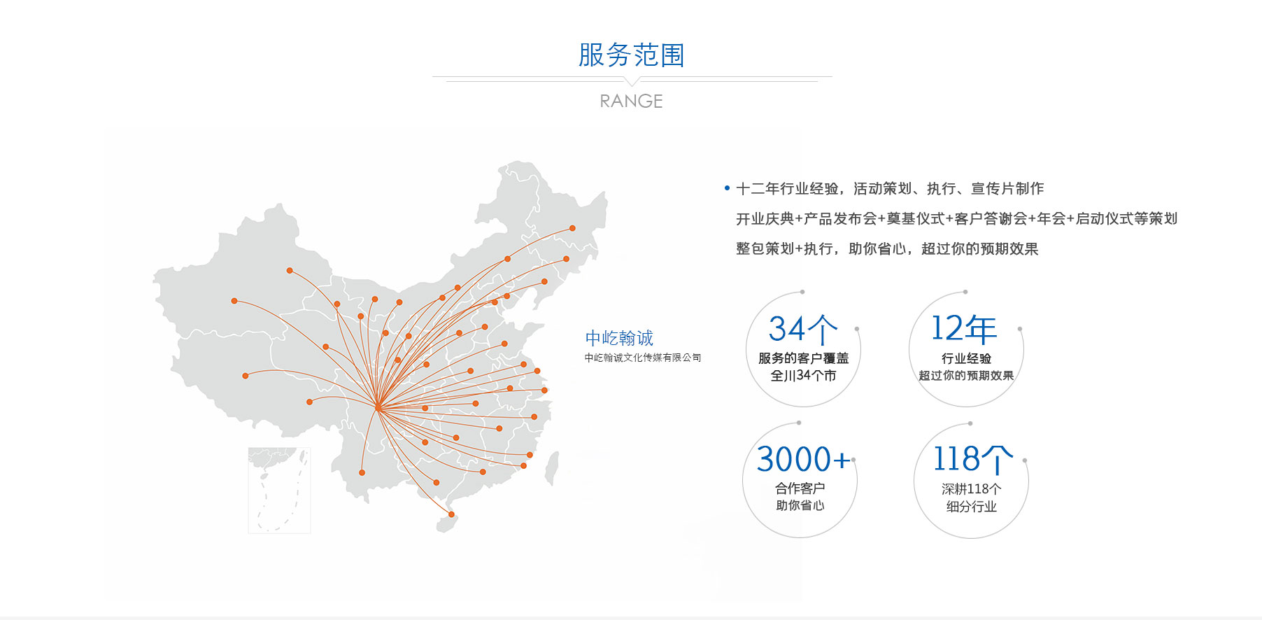 歷經(jīng)多年深耕,公司已形成 “公關(guān)活動(dòng)、展覽展示、品牌戰(zhàn)略服務(wù)、影視制作” 四大核心業(yè)務(wù)板塊。從創(chuàng)意策劃到落地執(zhí)行,從品牌塑造到視覺(jué)呈現(xiàn),從活動(dòng)運(yùn)營(yíng)到影像記錄,中屹翰誠(chéng)始終以專(zhuān)業(yè)視角與創(chuàng)新理念,滿(mǎn)足客戶(hù)多元化需求。憑借出色的服務(wù)品質(zhì)與專(zhuān)業(yè)能力,公司在市場(chǎng)中穩(wěn)步前行,服務(wù)版圖已拓展至政府、金融、媒體、演藝、建筑等 118 個(gè)細(xì)分行業(yè),與超 3000 家客戶(hù)建立深度合作關(guān)系,以實(shí)力贏(yíng)得廣泛認(rèn)可與信賴(lài)。